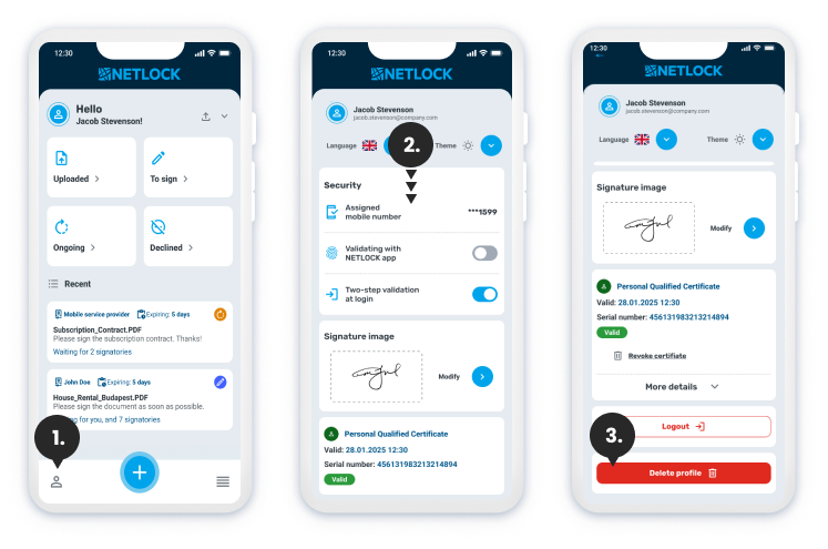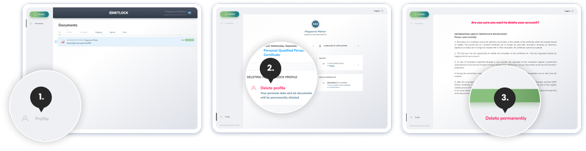1. Report your account delete request to NETLOCK Customer support by E-mail